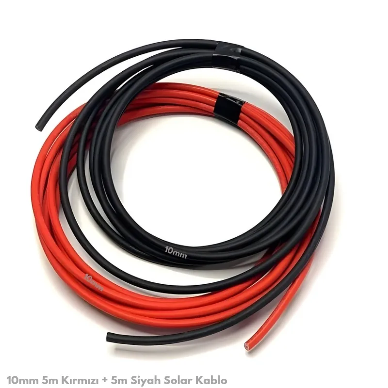 10mm 5m kırmızı + 5m siyah solar kablo, kısa mesafeli güneş enerjisi kurulumlarında güvenli, verimli ve uzun ömürlü bir bağlantı çözümü sunar.