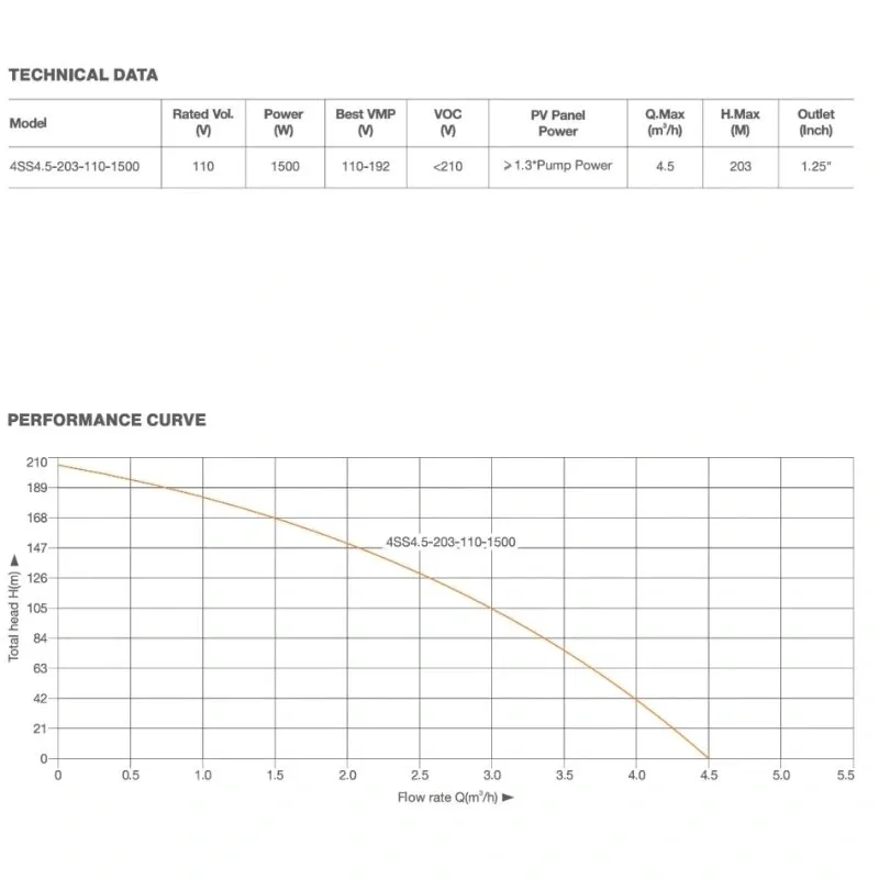 Maksimum 200 metre basma yüksekliği ve saatlik 4,5 ton su kapasitesi ile derin kuyular için üstün performans sunar.
