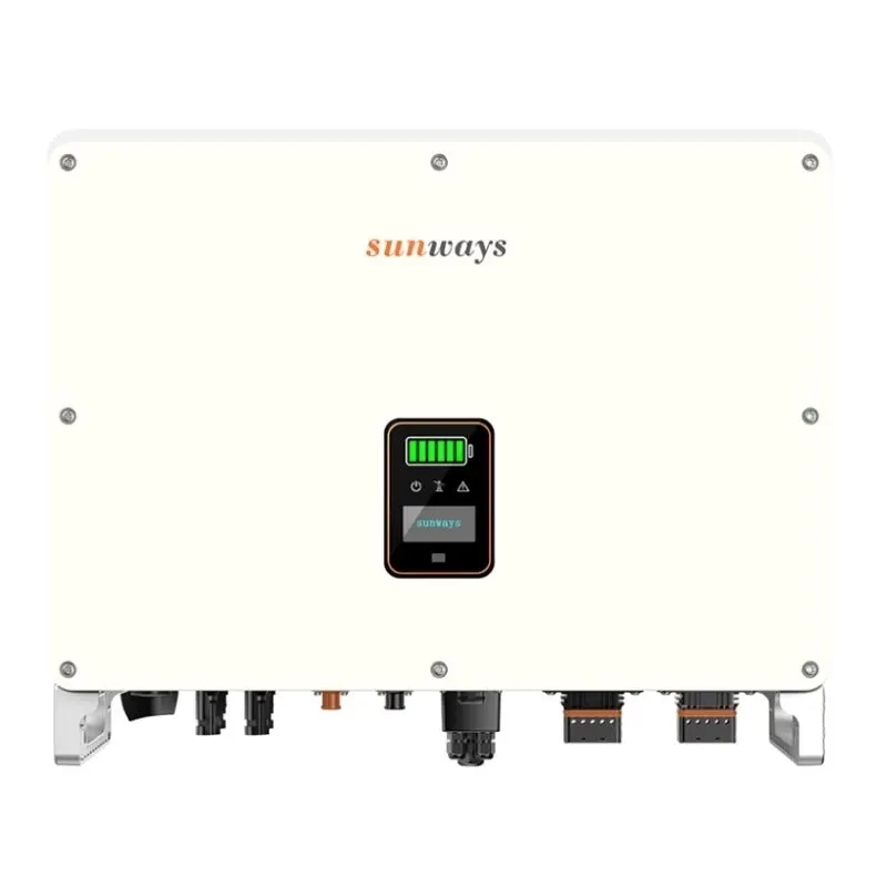 STH-33KTL-HT Sunways 33kW 2 MPPT, güneş enerjisini şebekeye bağlamak ve yedek güç sağlamak için tasarlanmış bir hibrit inverterdir. 2 MPPT şarj kontrolörü ile donatılmış bu inverter, güneş panellerinden gelen enerjiyi en verimli şekilde akülere depolar. Şebeke elektriği kesintiye uğradığında ise inverter, akülerde depolanan enerjiyi kullanarak evinizi veya işletmenizi besler.