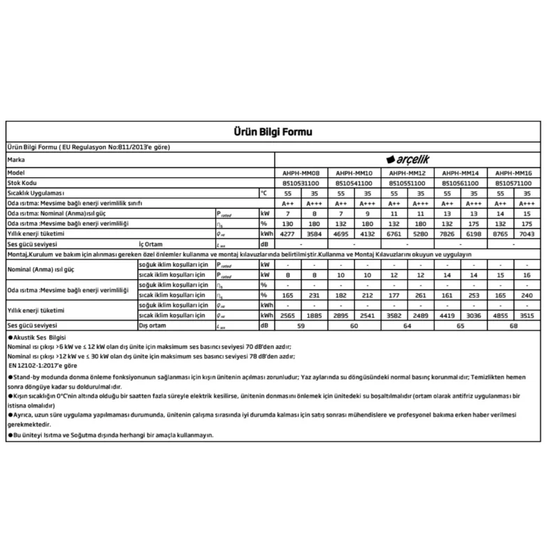 Arçelik AHPH-MM16 16 kW Trifaze İnverter Monoblok Isı Pompası ile geleceğin ısıtma ve soğutma teknolojisine hemen geçin. A+++ enerji verimliliği, güçlü nominal kapasitesi (15 kW ısıtma, 16 kW soğutma) ve akıllı yönetim özelliklerini tek bir monoblok ünitede birleştiren bu model, hem çevreyi korur hem de enerji faturalarınızda önemli ölçüde tasarruf sağlar. Yaşam alanlarınızda dört mevsim kesintisiz konfor ve ekonomik verimlilik arayanlar için AHPH-MM16 en akılcı ve güçlü çözümdür.