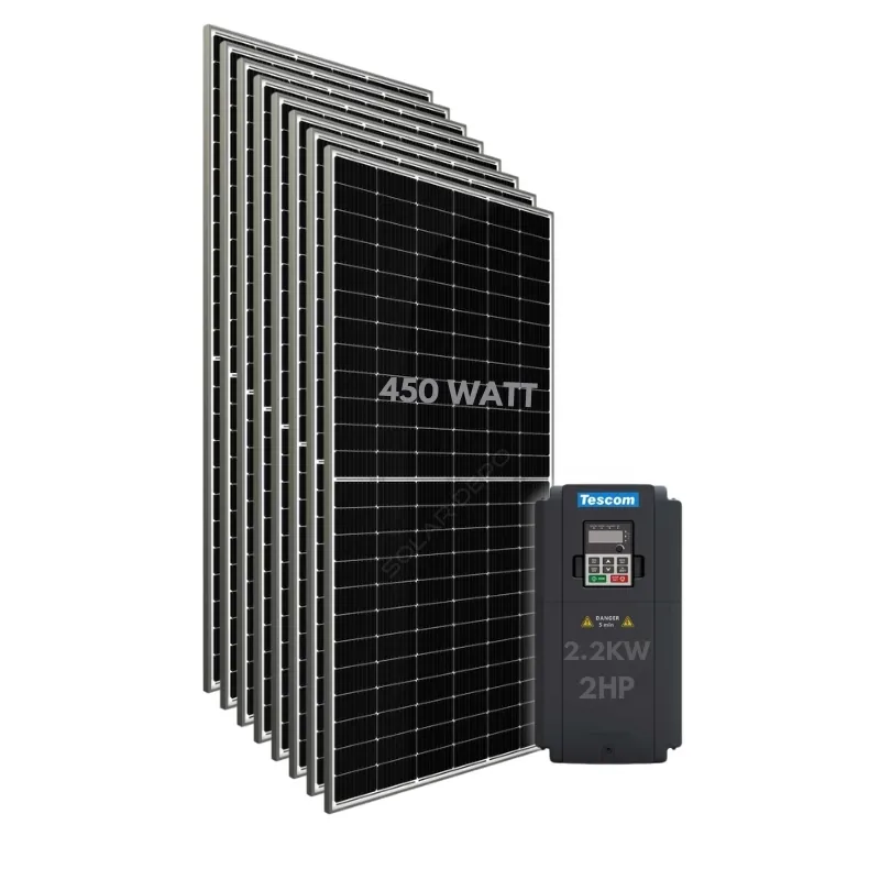 Bu sistem, günde 10-12 saat çalışır.Sistem Paket İçeriği (450W Panel ile)| Tescom-İnvt- Frecon 2.2KW 3Faz 220V Dalgıç Pompa Sürücüsü | 1 Adet |