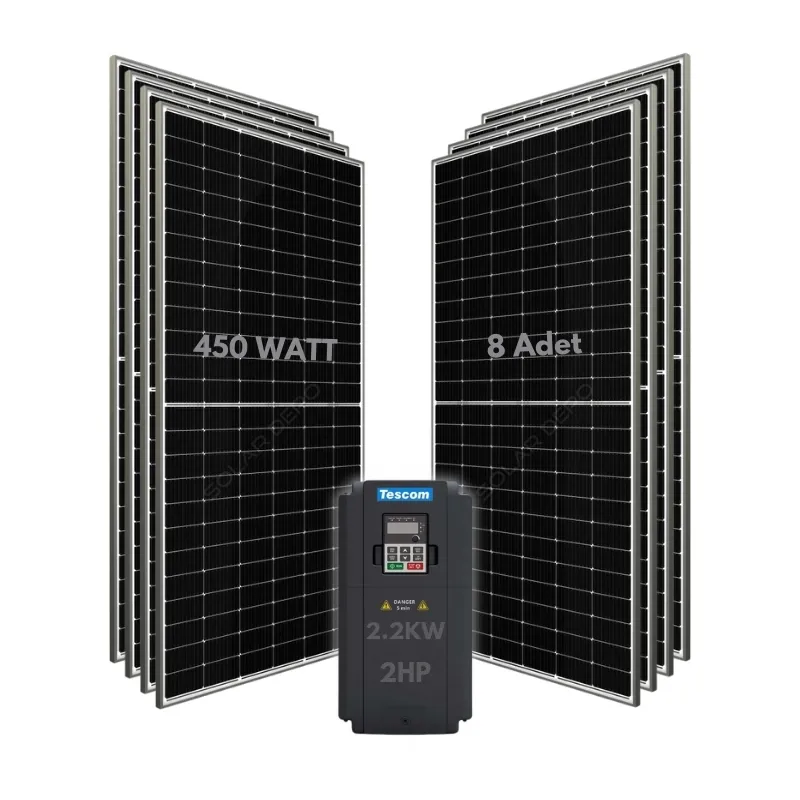 Bu sistem günde 10-12 saat çalışır.Sistem Paket İçeriği (450W Panel ile)| Tescom-İnvt-Frecon 2.2KW 3Faz 380V Dalgıç Pompa Sürücüsü | 1 Adet |