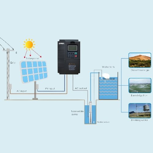 Bu inverter, hem tamamen güneş enerjisiyle hem de hibrit modda (şebeke AC + güneş DC) çalışabilme özelliğiyle tarımsal sulama, hayvan sulama ve uzak bölgelerde su temini için mükemmel bir çözümdür. Pilsiz yapısı sayesinde bakım gereksinimini azaltır ve sistem maliyetlerini düşürür.