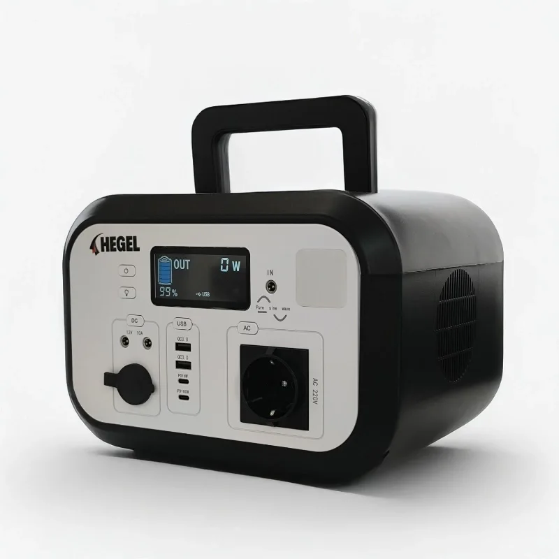 Hegel 600 watt güç kaynağı, ev aletleri ve mobil cihazlara elektrik sağlamak için özel olarak tasarlanmış küçük bir güç üretim sistemidir. Dahili bir lityum demir fosfat batarya ile donatılmış olup, çeşitli mobil ürünlerin güç ihtiyaçlarını karşılamak için hem DC hem de AC çıkış modları sunar. Ürün, güneş enerjisi ile AC şarjı ve şebeke elektriğinden AC şarjı desteklemektedir. Fanlar, LED ışıklar, cep telefonları, bilgisayarlar, tabletler ve TV'ler gibi yüklere bağlanabilir. Ev kullanımı, acil durum aydınlatması ve dış mekan çalışmaları için uygundur.