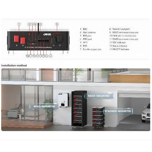 Hegel 5.12kWh 48V 100Ah LiFePO4 akü, eviniz, işyeriniz veya endüstriyel sistemleriniz için güvenlik, yüksek performans ve akıllı kontrolü tek bir pakette sunar. Modüler yapısı, uzun ömürlü hücre teknolojisi ve akıllı izleme özellikleri ile enerji yönetimini kolay ve verimli hâle getirir.