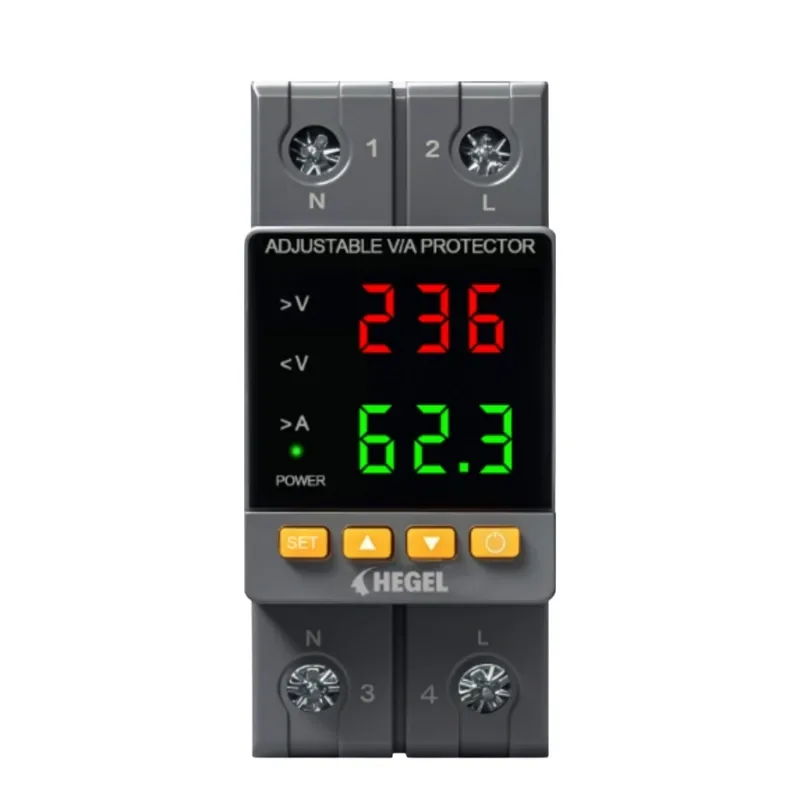 Hegel 63A Dijital VA Koruyucu, sigorta, voltaj koruma rolesi ve amper ayarlı devre kesici özelliklerini tek bir üründe birleştirerek, hem yerden hem de maliyetten tasarruf etmenizi sağlar.