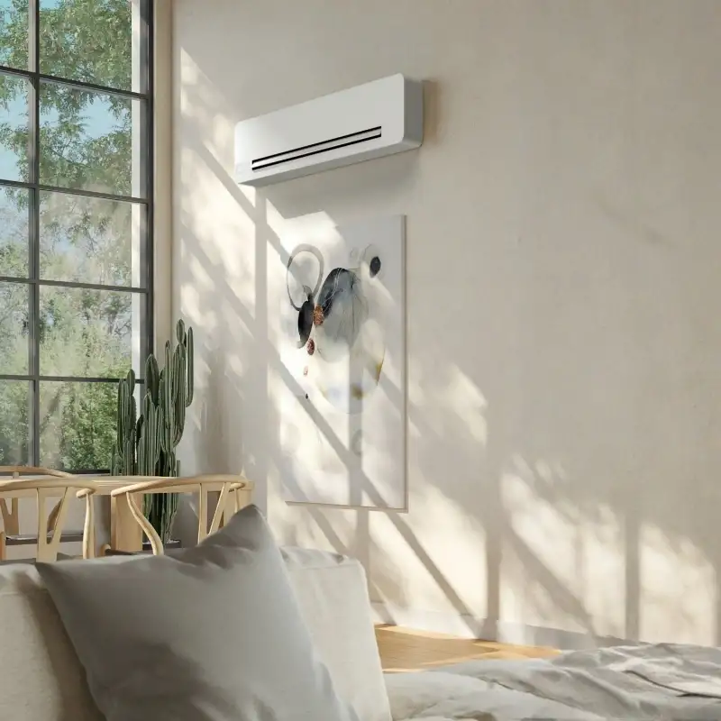 Minimalist ve İnce Tasarım: Yalnızca 215 mm Derinliği sayesinde duvarda zarif bir profil oluşturur. Geleneksel klimaların hantal görünümünden uzaktır.
