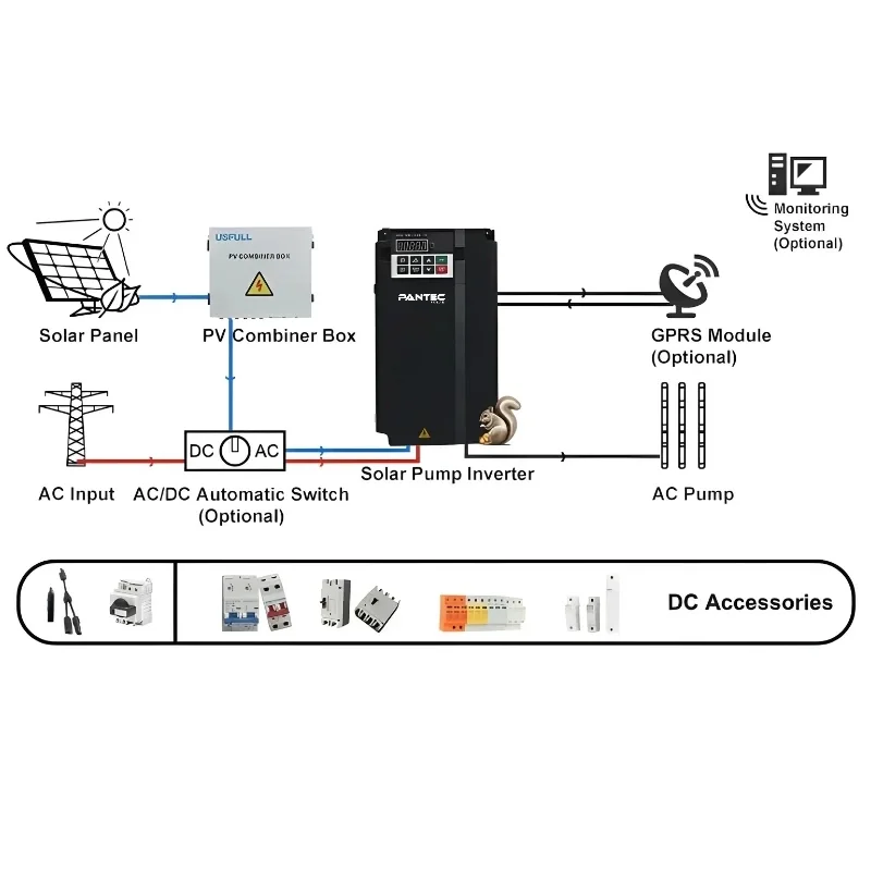Çift Kaynak Desteği: Güneş enerjisinin yanı sıra 380V AC şebeke veya jeneratör girişi de bulunur. Bu hibrit özelliği sayesinde güneş ışığı yetersiz kaldığında bile kesintisiz bir şekilde pompanızı çalıştırabilirsiniz.
