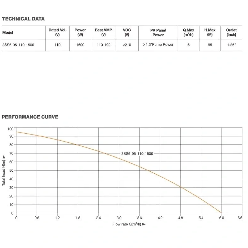 Maksimum 95 metre basma yüksekliği ve saatlik 6 ton su kapasitesi ile yüksek performans sunar.